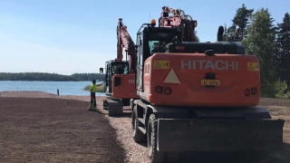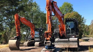 Vi har valt miljövänliga grävmaskiner från Hitachi, en hjulburen och en bandburen. Med vår traktorgrävare och dumpers tar vi enkelt hand om överskottsmassorna.